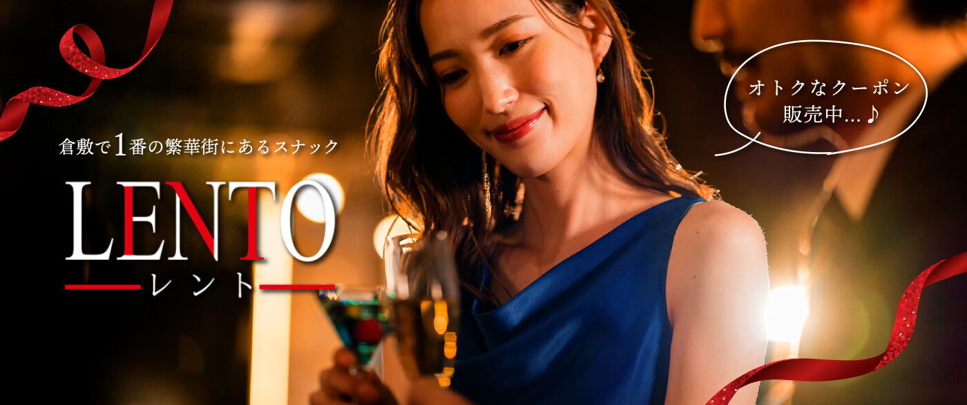 倉敷駅や美観地区からのアクセスに便利な繁華街の中心に、2007年からスナックLENTO(レント)はございます。 お客様と会話を交わしながらお酒で盛り上がる夜は私たちにとっても格別。あなた様のご来店を心よりお待ち申し上げます。